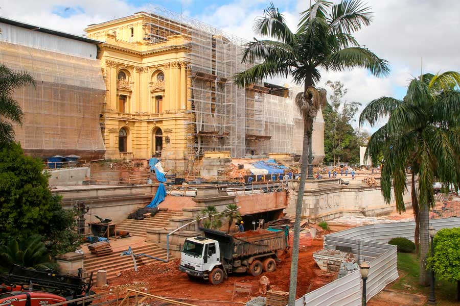 A obra, iniciada em outubro de 2019, é executada em duas frentes: ampliação e restauro do Edifício Monumento. Na parte da ampliação, foi realizada uma escavação em frente ao prédio, que abrigará a nova entrada, bilheteria, auditório para 200 pessoas, espaço do educativo, café, loja e sala de exposição temporária.