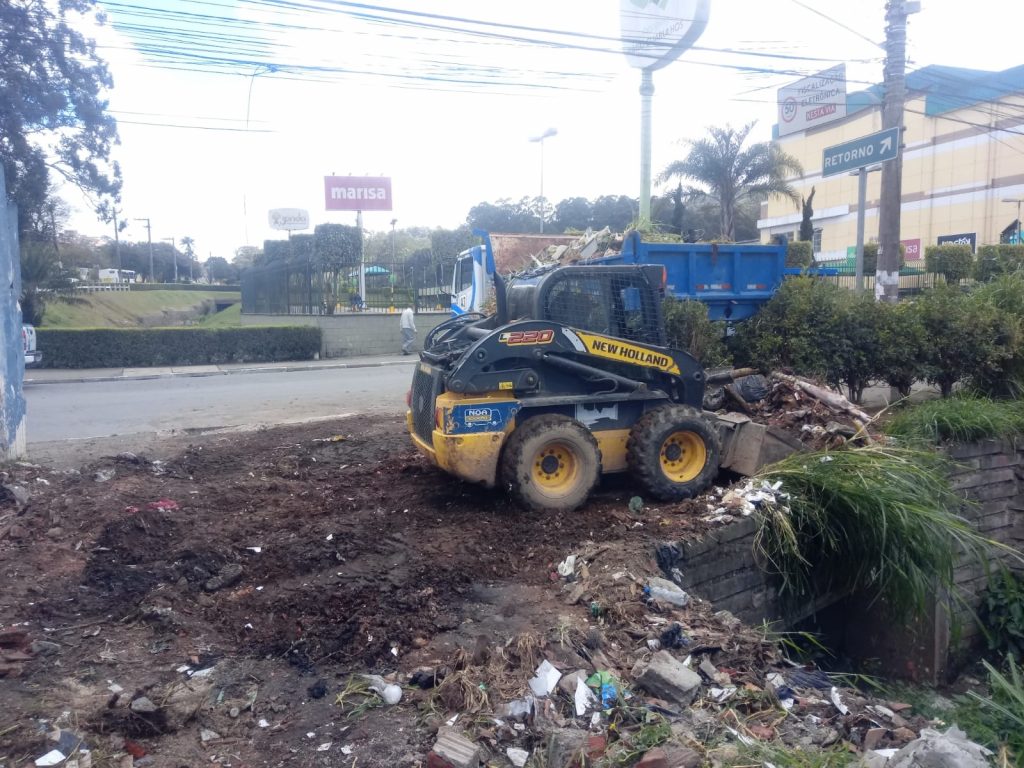 Na região dos Pimentas, o serviço foi realizado em pontos de descarte irregular localizados na rua dos Médicos, no Jardim Tupinambá, e na rua Caminho Dezesseis, no Parque Harami.
