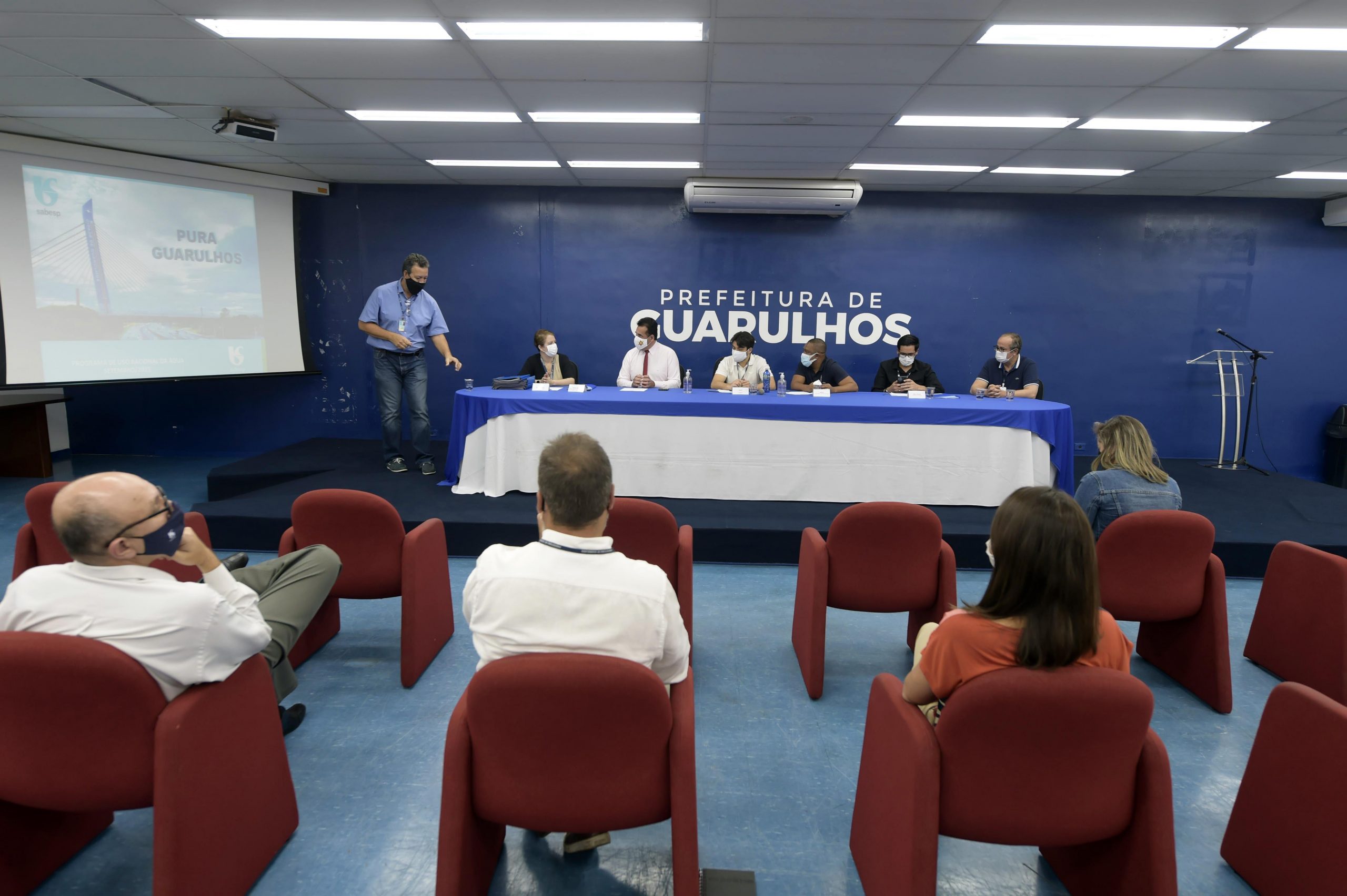 O prefeito Guti assinou na manhã desta sexta-feira (03) o contrato do Programa de Uso Racional da Água (Pura) com a Sabesp no Paço Municipal. Ele será implantado a partir deste mês em 19 Escolas da Prefeitura de Guarulhos (EPGs) e no CEU Continental e, quando estiver completamente funcional, ou seja, atingir todas as 150 EPGs e os CEUs, poderá significar uma economia de R$ 2,5 milhões por ano em recursos públicos.