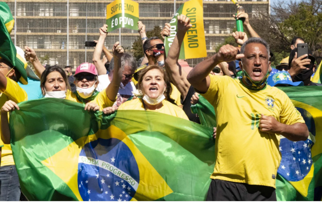 Na noite da segunda-feira, 6, apoiadores do presidente começaram a se dirigir para a Esplanada dos Ministérios, em Brasília, levando cartazes com pedidos de fechamento do STF e do Congresso O presidente sobrevoou de helicóptero o local durante o dia.
