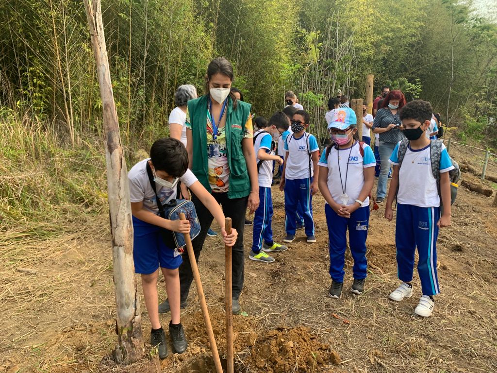 Plantio de 50 mudas de árvores nativas da Mata Atlântica na EPG Nicolina Bispo, com a participação de alunos e professores