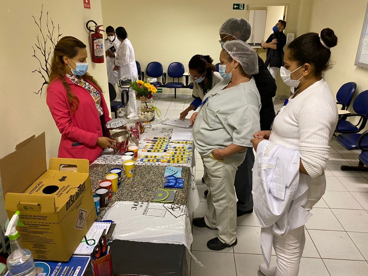 Gerenciamento dos resíduos do serviço de saúde. Este foi o tema do treinamento aplicado no Hospital Municipal Pimentas Bonsucesso (HMPB), em Guarulhos, administrado pelo IDGT, na última quinta-feira (23), pela engenheira ambiental da unidade, Rosineide Iloia, e pelo técnico de meio ambiente, Teódolo Júnior. A ação aconteceu na entrada de colaboradores do hospital.