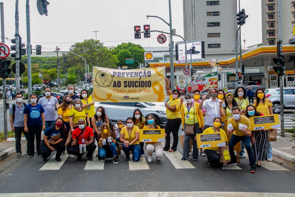 A Rede de Atenção Psicossocial (RAPS) da Prefeitura de Guarulhos realizou uma intervenção urbana com o tema “Prevenção ao suicídio: Todos pela vida” para chamar a atenção da população ao Setembro Amarelo. A ação ocorreu nesta quarta-feira (29) na avenida Tiradentes, uma das principais vias da cidade.