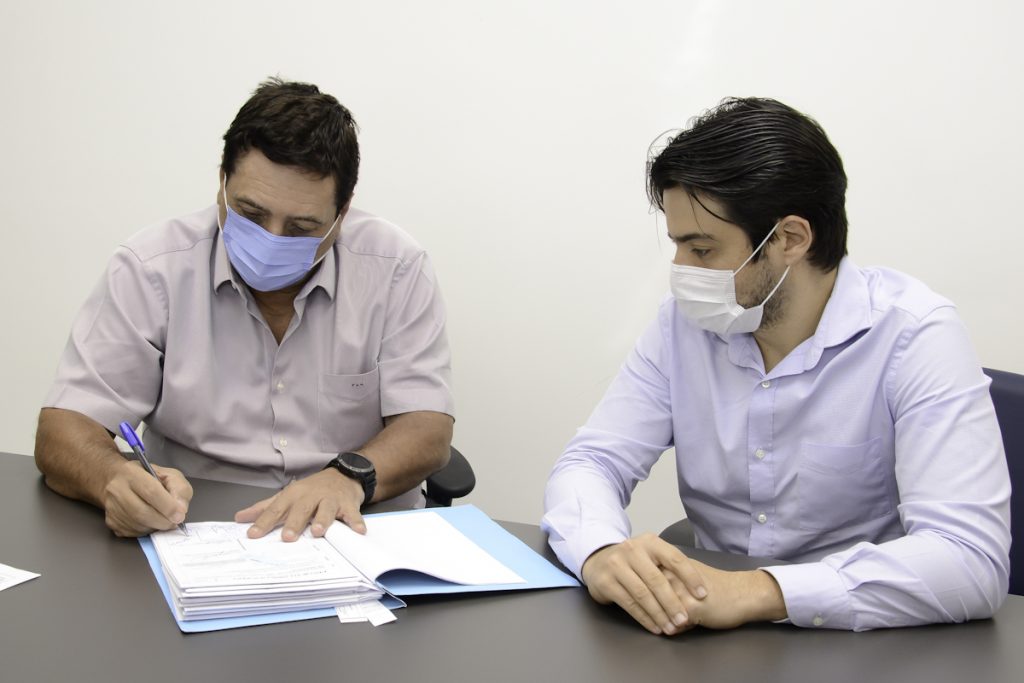 O presidente Martello (PDT) recebeu no início da tarde desta quinta-feira (30), em seu gabinete na Câmara de Guarulhos, o prefeito Guti (PSD). O chefe do Executivo veio conhecer a Casa, oportunidade que não tinha tido ainda devido às restrições impostas pela pandemia, e entregar o Habite-se da sede própria. Este documento integra a regularização de um imóvel, garantindo que a construção foi concluída adequadamente e que pode ser habitada ou frequentada.