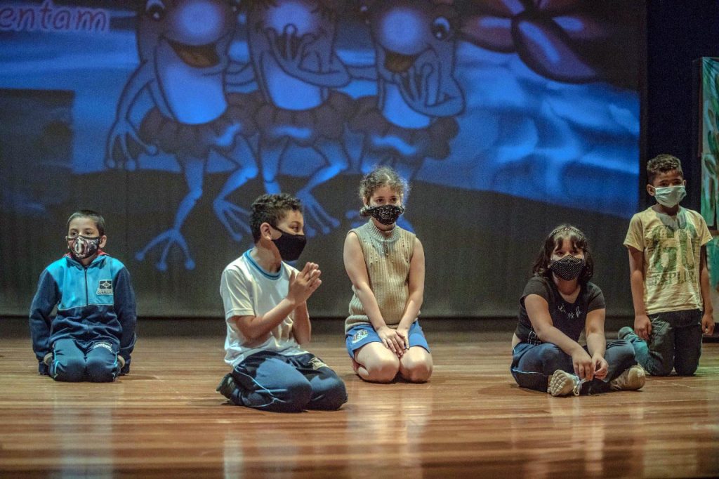 Na sequência, a classe bilíngue de surdos encenou a peça teatral Cachinhos Dourados e os Três Ursos. “A apresentação destaca a reabertura do teatro para os alunos, com a peça adaptada incluindo novos alunos surdos. As crianças interagiram muito bem, mesmo com pouco tempo por conta da pandemia”, ressaltou Ana Biggi, juntamente com Maria Luiza de Mattos, ambas professoras bilíngues especializadas da rede municipal.