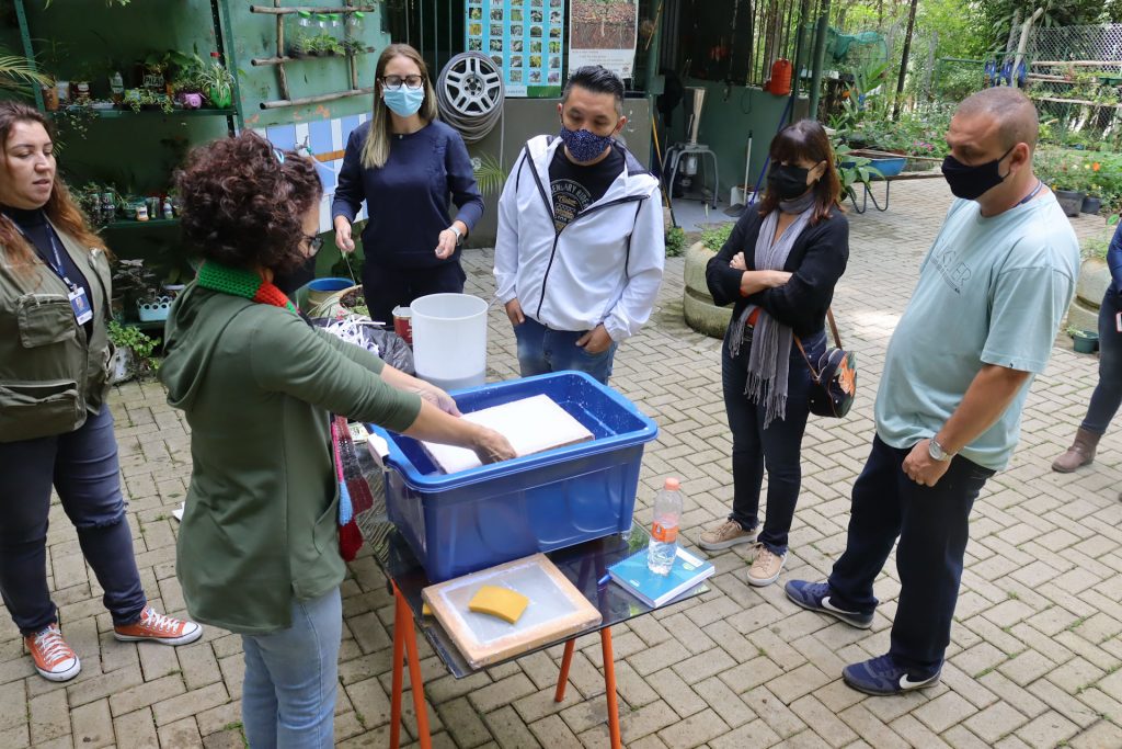 Todas as atividades acontecem ou têm início no Viveiro Educador localizado no final da alameda principal do bosque. Nesta quarta-feira (13), o viveiro recebeu a primeira oficina do mês sobre papel semente, quando os participantes aprenderam a utilizar diversos tipos de sementes para reutilizar papeis artesanais transformando-os em cartões de visitas, blocos de recados, entre outros artigos que, após utilização, poderão ser plantados.