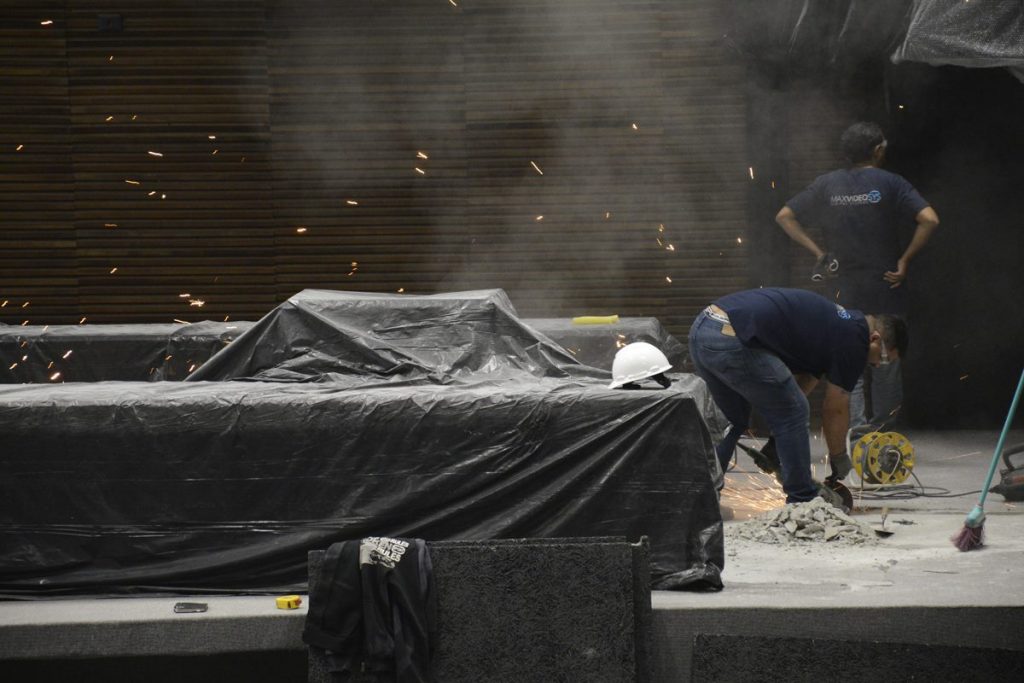 O plenário da Câmara Municipal está passando por obras para instalação de cabeamento estruturado. De acordo com o gestor de planejamento estratégico de Assuntos Administrativos, Verci Ferreira, a reforma fará a passagem dos conduítes para interligação do painel do plenário com as bancadas dos vereadores e os sistemas de áudio e vídeo. “Ou seja, essa interligação não existia, não houve previsão. Hoje, tivemos essa necessidade. Para ter o pleno funcionamento, foi preciso fazer essa obra de incisão de todos esses conduítes para poder interligar a Câmara com os nossos departamentos, audiovisual e painel de votação”, completou.