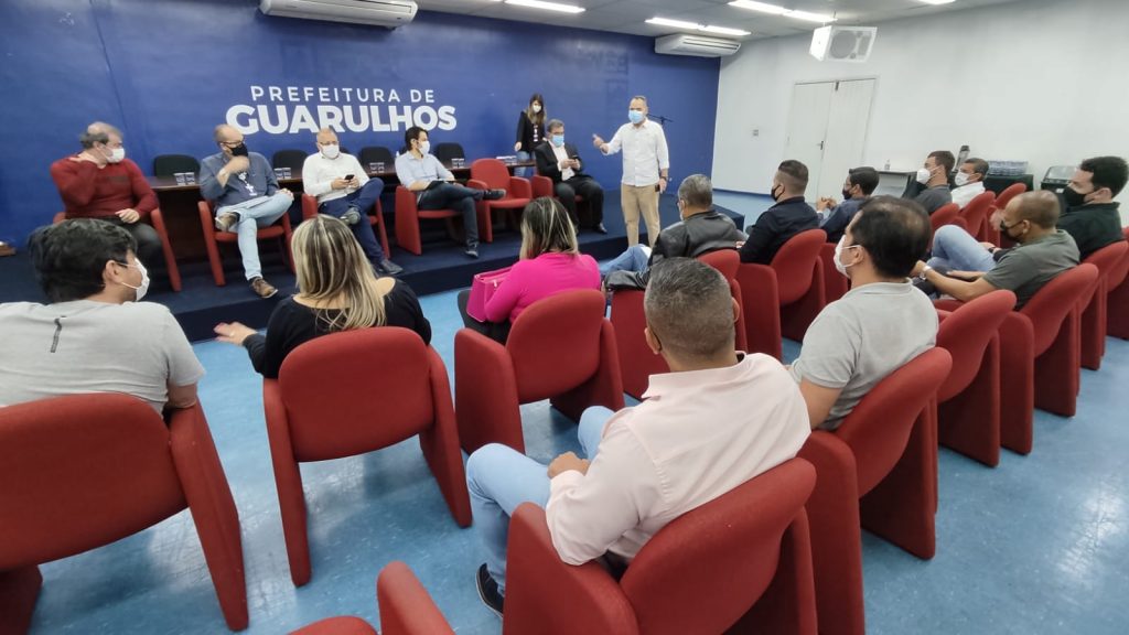 Uma série de reuniões encabeçadas pelo prefeito Guti estão sendo realizadas em Guarulhos nesta semana com o objetivo de discutir a taxa ambiental, aprovada pela Câmara Municipal para vigorar a partir de 2022 no município, por determinação do governo federal, a partir do Marco Regulatório do Saneamento. Nesta terça-feira à tarde, vereadores da base do Governo se reuniram com o chefe do Executivo no Paço Municipal para debater possível redução dos valores que constam do PL já aprovado. Um novo estudo deve ser concluído em duas semanas para que se chegue aos novos valores.