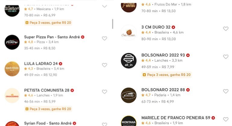 Usuários do aplicativo iFood relataram no Twitter que os nomes de alguns estabelecimentos dentro do aplicativo foram alterados na noite da última terça-feira (2). Aparentemente foi um ataque hacker, os nomes dos estabelecimentos foram mudados para “Lula Ladrão”, “Vacina Mata”, “Petista Comunista”, entre outros.