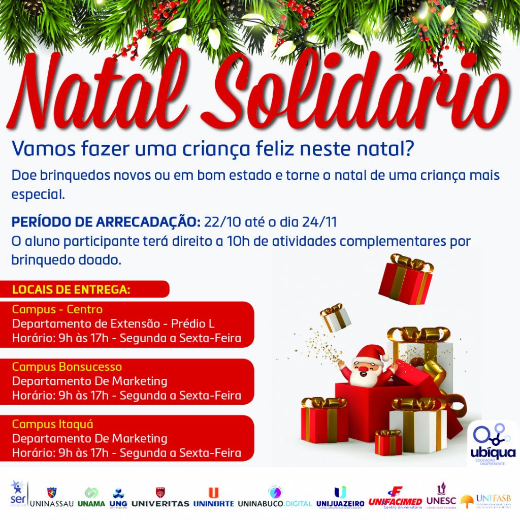 A iniciativa pretende arrecadar brinquedos novos e usados em bom estado para crianças entre 0 e 7 anos. Estimativa é de que 120 pequenos do bairro sejam beneficiados com a ação solidária, que faz parte do projeto de extensão da Universidade. A entrega dos presentes, dia 22 de dezembro, será realizada pelos estudantes, que também farão atividades lúdicas com as crianças.