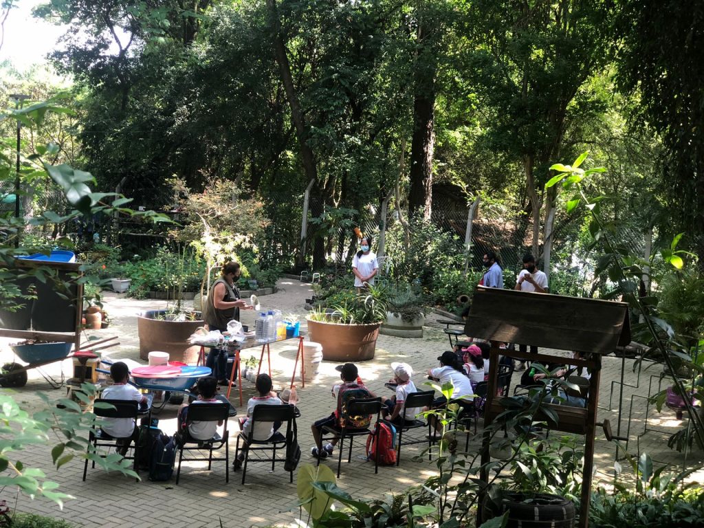 Alunos do Instituto Educacional de Cultura Brasileira, com idade entre sete e doze anos, participaram de oficinas sobre sustentabilidade promovidas pela Secretaria de Meio Ambiente de Guarulhos no Viveiro Educador do Bosque Maia.