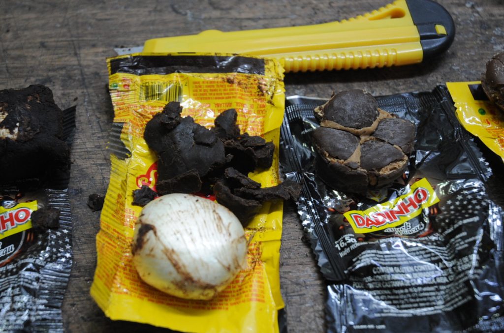 Foram 2 ações distintas. Na primeira ação, policiais federais foram acionados por servidores da Receita Federal, para localizar um passageiro, em razão da suspeita levantada pela equipe que atua com cães farejadores, na fiscalização das bagagens despachadas. Os cães se interessaram por uma mala, que foi selecionada e submetida à análise por meio do aparelho de raio-x. Nas imagens foi possível observar substância orgânica compactada em pequenas bolas. A passageira proprietária da mala suspeita, uma brasileira de 25 anos de idade foi localizada, pelos policiais federais, dentro da aeronave e conduzida à delegacia onde a mala foi aberta e identificado mais de 1 Kg de cocaína oculta dentro de embalagens de bombons. O destino da droga era o Sudão do Sul, no continente africano.