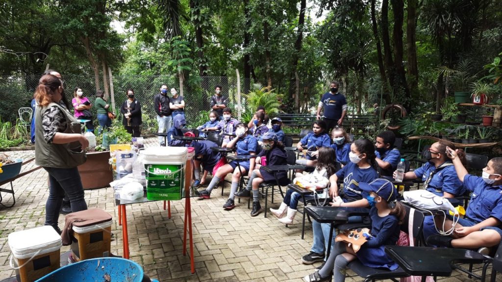 Os escoteiros aprenderam a montar um minhocário caseiro para transformar sobras de alimentos em fertilizante orgânico, que pode ser utilizado em vasos e jardins. A ideia é multiplicar a técnica e assim diminuir a geração de lixo residencial e, consequentemente, a emissão de gases que causam o aquecimento do planeta, também conhecido como efeito estufa.