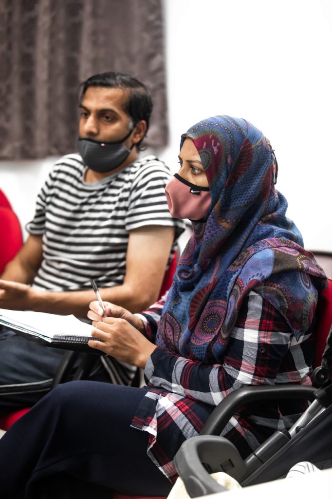 Muhammad Ahmad, de 35 anos, veio do Paquistão para o Brasil há cerca de um ano e meio com sua esposa, Aqeela Rabbni, seus quatro filhos, sua mãe, um sobrinho e a irmã Ayesha Jabeen, também aluna do curso. “Viemos ao Brasil para fazer uma visita, mas por conta pandemia os aeroportos foram fechados e permanecemos no país. Na época minha esposa estava grávida, sendo assim, tivemos nosso filho no hospital na Maternidade Jesus, José e Maria, onde ela foi muito bem atendida”.