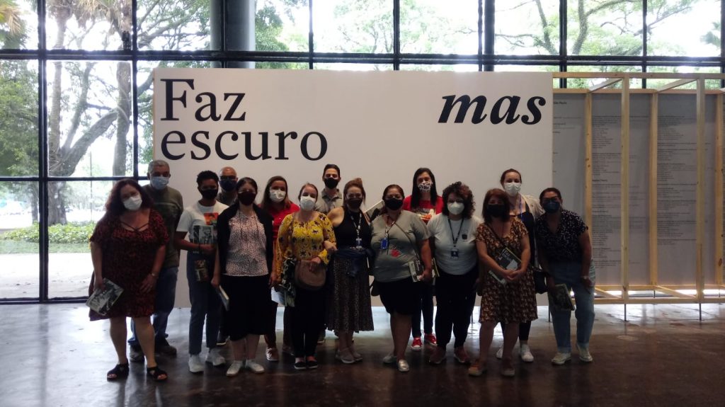 Nesta quarta-feira (24) educadores da Prefeitura de Guarulhos estiveram em uma exposição da 34º Bienal de São Paulo com o tema Faz Escuro mas eu Canto, no Ibirapuera. A visita integra a programação do Encontro de Artes, evento promovido pela Secretaria de Educação com a proposta de vivenciar e refletir sobre as diversas linguagens e suas contribuições para a formação humana por meio de atividades presenciais e online.
