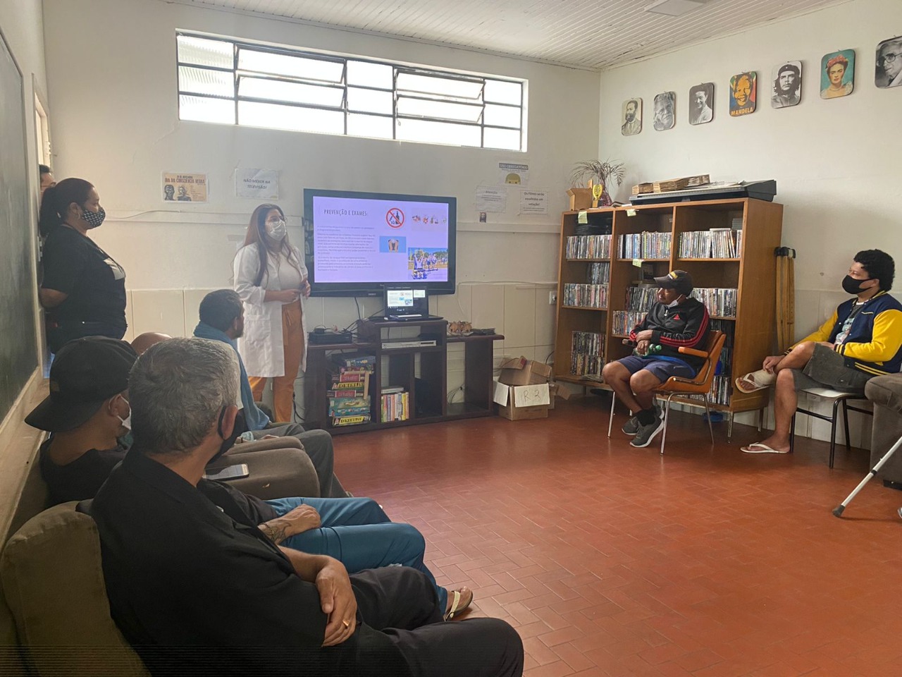 Durante uma hora e meia, um grupo de 20 pessoas em situação de rua assistidas pelo Serviço de Acolhimento Institucional (SAI) Centro participou de uma palestra sobre prevenção ao câncer de próstata nesta quarta-feira (24) no próprio equipamento municipal. A ação integra o Novembro Azul, mês dedicado no país à conscientização sobre a doença junto ao público masculino.