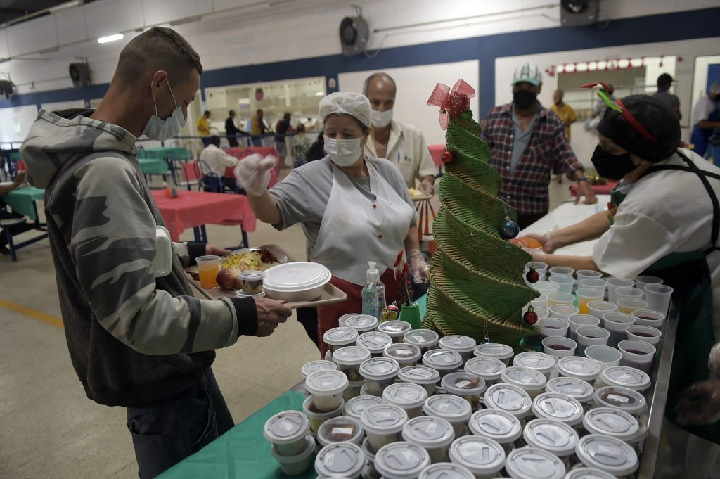 Cerca de mil pessoas participaram nesta quinta-feira (23) do almoço especial de Natal no Restaurante Popular Josué de Castro, no Taboão, que teve o salão decorado com toalhas vermelhas e verdes nas mesas, árvore de Natal e música ambiente. Ao valor de R$1, o equipamento da Prefeitura de Guarulhos serviu cardápio composto por arroz colorido, salada de cenoura e beterraba, feijão, maionese, frango assado, farofa e espetinho, suco, refrigerante, maçã e bolo no potinho de sobremesa.