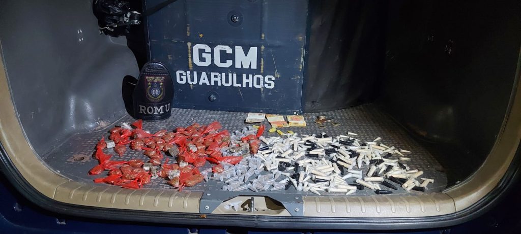 A Guarda Civil Municipal (GCM) de Guarulhos, por meio da Inspetoria de Patrulhamento Tático (Romu), deteve duas pessoas acusadas de tráfico e apreendeu mais de 400 porções de drogas na noite de sábado (22). Os agentes encontraram os entorpecentes com os indivíduos na rua Prados, Vila Nova Bonsucesso, ao averiguar a denúncia feita pela Central de Atendimento da GCM (153). Os suspeitos tentaram fugir ao avistarem a viatura e um deles dispensou uma sacola contendo as substâncias.