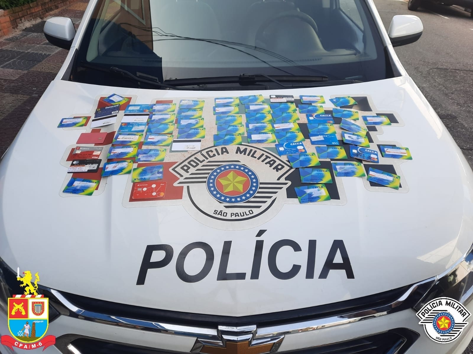 A Polícia Militar deteve, na última quinta-feira (27), um homem que foi surpreendido com mais de 60 cartões bancários. Ele foi abordado quando saía de uma agência bancária, no bairro Santo Antônio, na cidade de São Caetano do Sul.