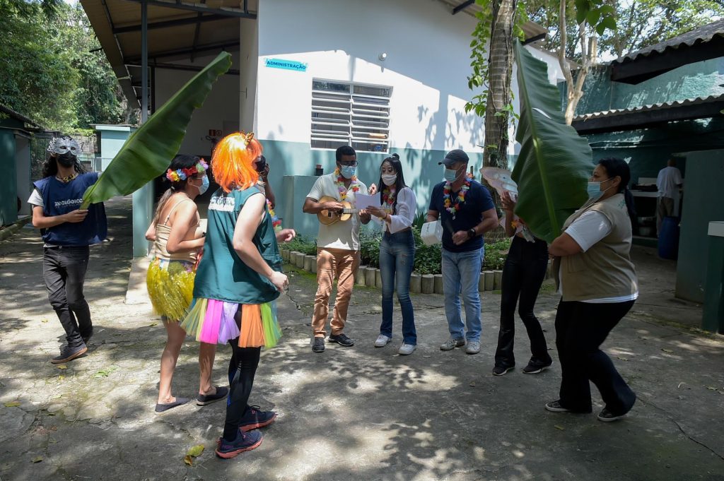 Para completar a festa, parte da equipe se fantasiou e circulou pelo parque cantando e tocando marchinha especialmente composta para a ocasião. “Estou achando muito legal. Por mais simples que seja, é uma oportunidade de aprendizado e de diversão para as crianças longe do celular e do computador”, disse Tatiane Alves da Silva, mãe de Arthur Alves da Silva, de três anos, e de Alice Alves da Silva, de nove. O trio participava de excursão ao zoo promovida pelo CEU Uirapuru.