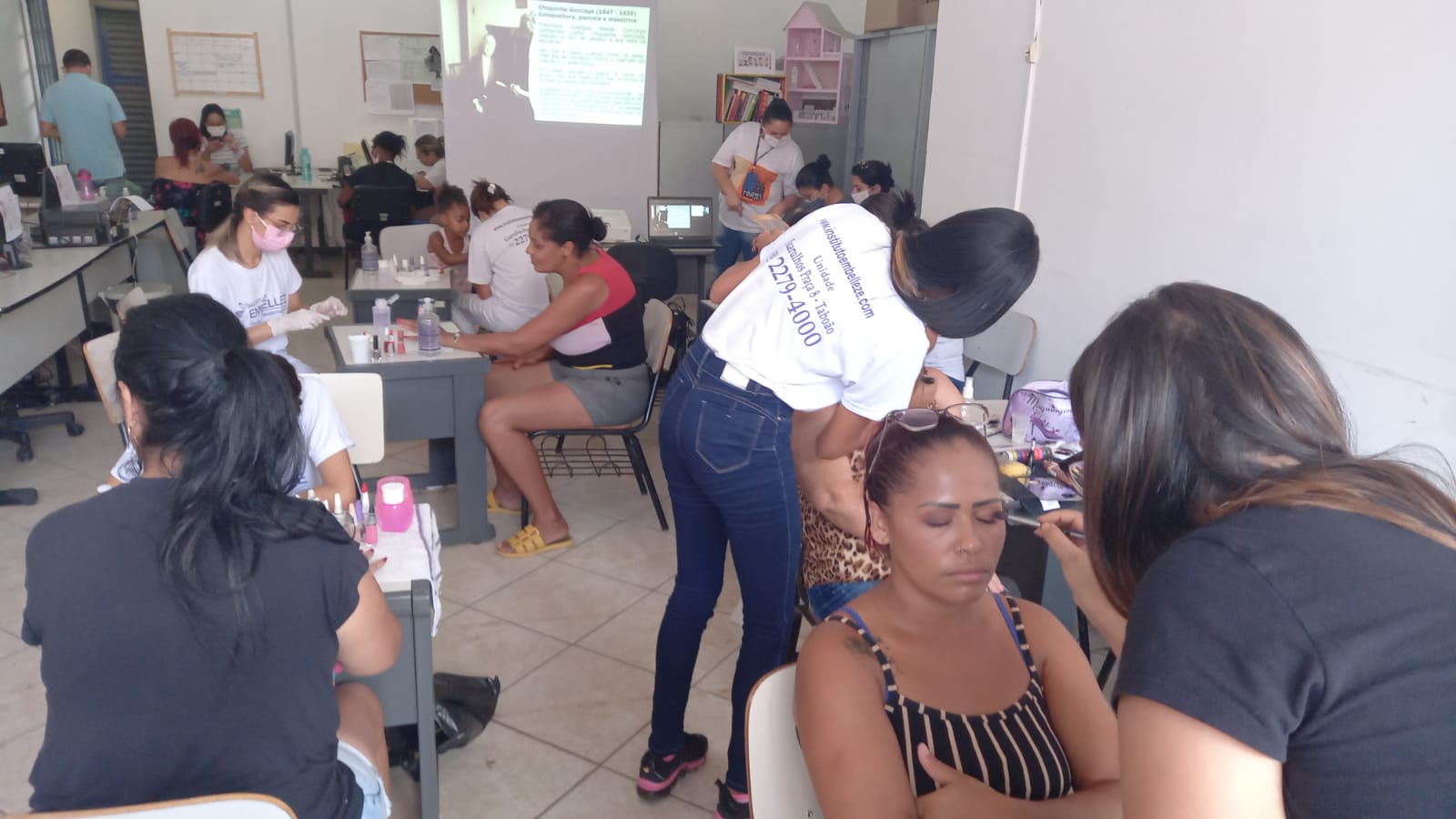 Atendimentos estéticos e suporte jurídico com o objetivo da ampliação dos direitos da mulher aconteceram no Cras Santos Dumont. No local também foi preparado um espaço com brincadeiras infantis para que as mulheres acompanhadas de crianças pudessem estar em todas as atividades. Duzentas participantes receberam absorventes do programa Mude esse Ciclo.