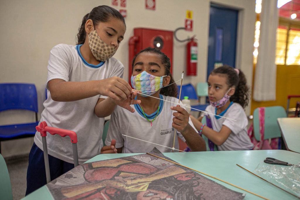 Com o objetivo de construir uma escola criativa por meio de aulas interativas e lúdicas, as turmas do 4º e do 5º ano da Escola da Prefeitura de Guarulhos Anísio Teixeira, localizada na Vila Paraíso, participaram da Oficina de Pipas na última sexta-feira (18). A atividade foi realizada durante o período estendido de aula por meio do Programa Educa Mais, que amplia o tempo de permanência das crianças na escola para alavancar o processo de aprendizagem dos estudantes da rede municipal.