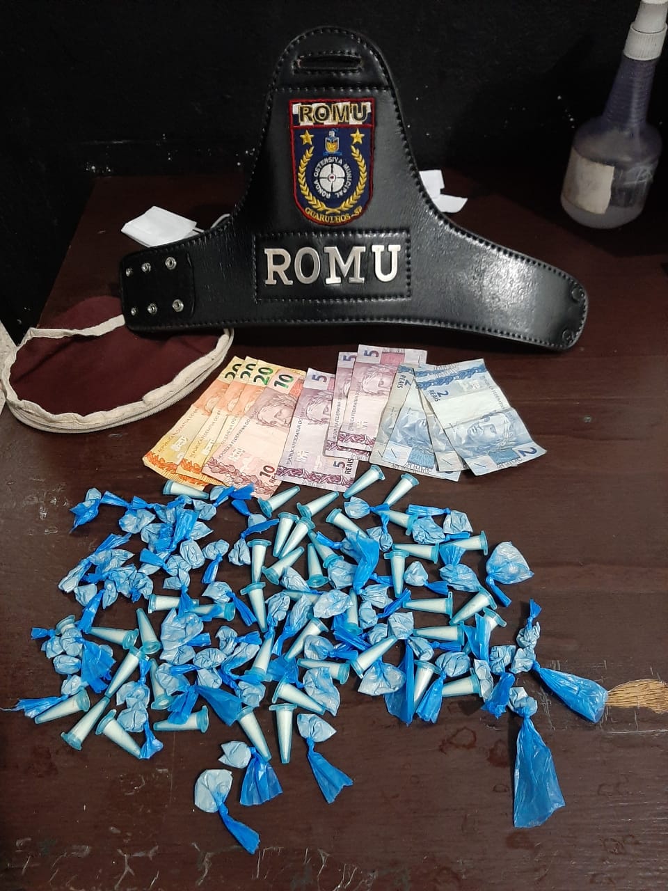 A mulher portava 43 porções de cocaína e o homem 93, todas embaladas para a venda, de acordo com as perícias da Polícia Civil. Ambos os acusados ficaram detidos pelo artigo 33 do Código Penal.