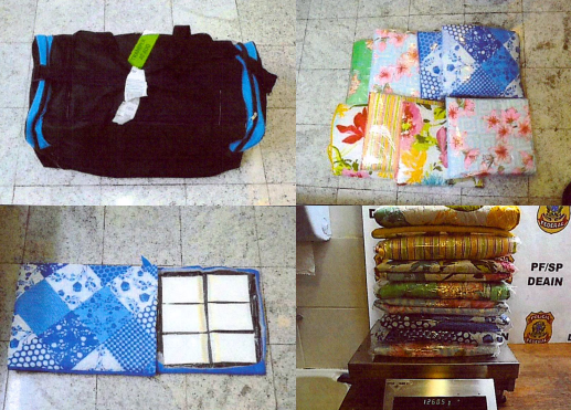Policiais federais, em fiscalização junto às esteiras de bagagens despachadas, desconfiaram do conteúdo de uma bolsa cujas imagens, analisadas por meio do raio-x, indicaram a existência de substância orgânica dentro de peças de tecido. A bagagem foi separada e seu proprietário, um homem de 52 anos de idade, nacional da Nigéria, que ingressou no país beneficiado pela Lei do Refúgio, foi localizado e conduzido à delegacia da PF. Em sede policial, na presença de testemunhas, a bolsa foi aberta e os policiais encontraram, ocultos dentro de oito edredons, quase 10 quilos de cocaína.