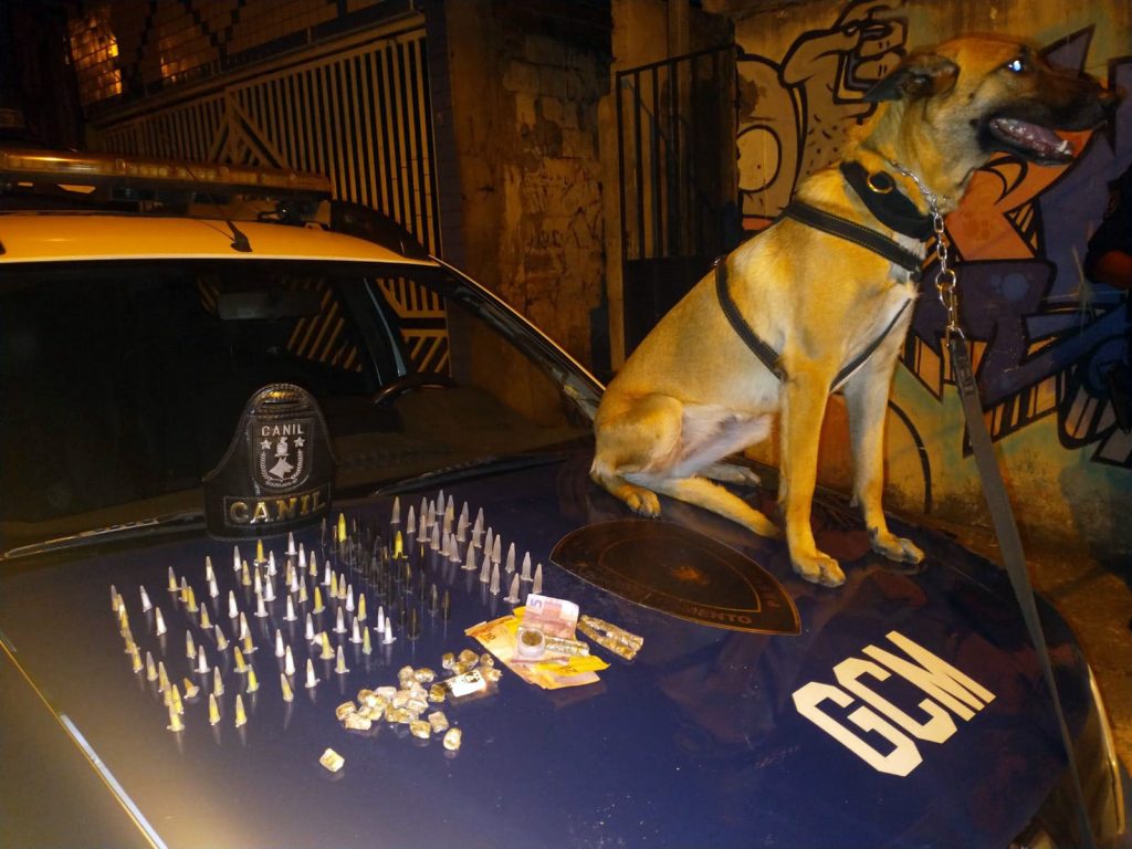 O Canil da Guarda Civil Municipal (GCM) de Guarulhos prendeu um homem na prática de tráfico de entorpecentes na rua Tenente Campos, Jardim Santa Rita, na madrugada desta segunda-feira (25) durante patrulhamento preventivo pela região. Ao avistar a viatura o acusado arremessou uma sacola e tentou correr, mas foi interceptado imediatamente.