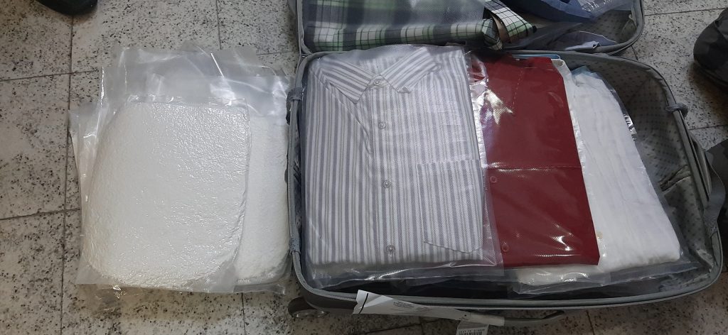 Policiais federais, que fiscalizavam as bagagens despachadas por passageiros que embarcariam em voo para Lisboa, em Portugal, selecionaram uma mala, após a sinalização dos cães farejadores, e a submeteram para análise por meio do aparelho de raio-x. As imagens indicavam a existência de substância orgânica distribuída em diversos volumes. Os policiais diligenciaram e encontraram o proprietário da mala no momento em que ele passava pelo finger, junto à aeronave. O passageiro, nacional da Guiné Bissau, que ingressou no país beneficiado pela Lei do Refúgio, reconheceu sua bagagem e disse que a mala suspeita, lhe foi dada por um conhecido para que levasse para Portugal. Dentro da mala havia diversas camisas sociais cuja embalagem ocultava volumes contendo cocaína. O volume total da droga apreendida somou mais de 12 kg.
