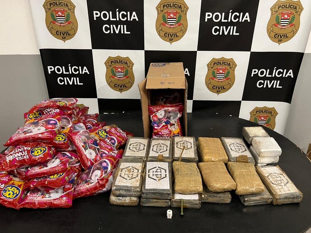 A Polícia Civil prendeu três homens, entre 33 e 43 anos, após flagrá-los tentando esconder mais de 26 quilos de cocaína em uma carga de doces. A ação ocorreu nesta quarta-feira (27), em Cubatão, no litoral paulista.