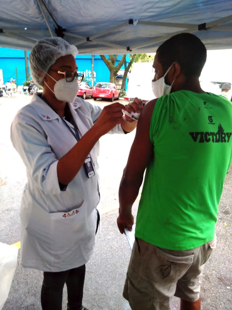 Oitenta moradores de rua foram vacinados no último domingo (15) contra a covid-19 e a gripe pelas equipes da Rede de Atenção aos Direitos Humanos e da atenção básica da Secretaria da Saúde de Guarulhos.