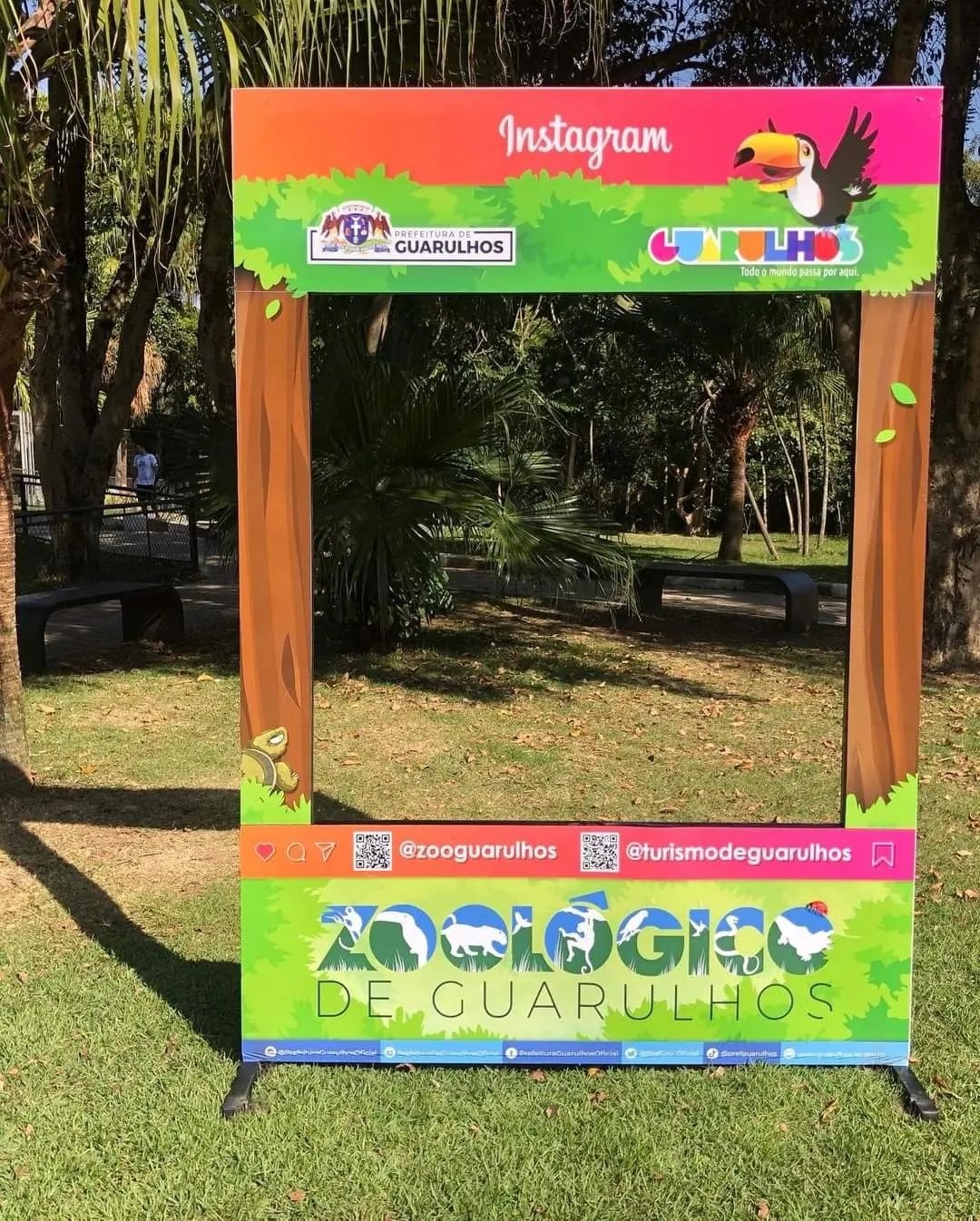 Os totens, lembram molduras para quadros ou fotografias, onde o visitante fará seus registros em uma linda paisagem, registrando os principais pontos turísticos de Guarulhos.