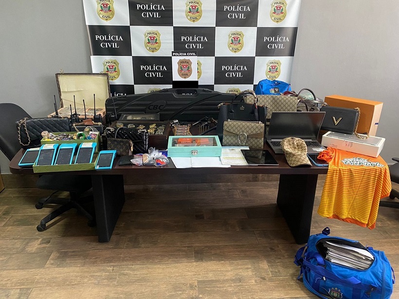 Na casa do principal capturado foram apreendidos dinheiro em espécie, relógios, joias, bolsa de grife, cinco veículos de luxo e duas armas de airsoft – um revólver e uma espingarda.