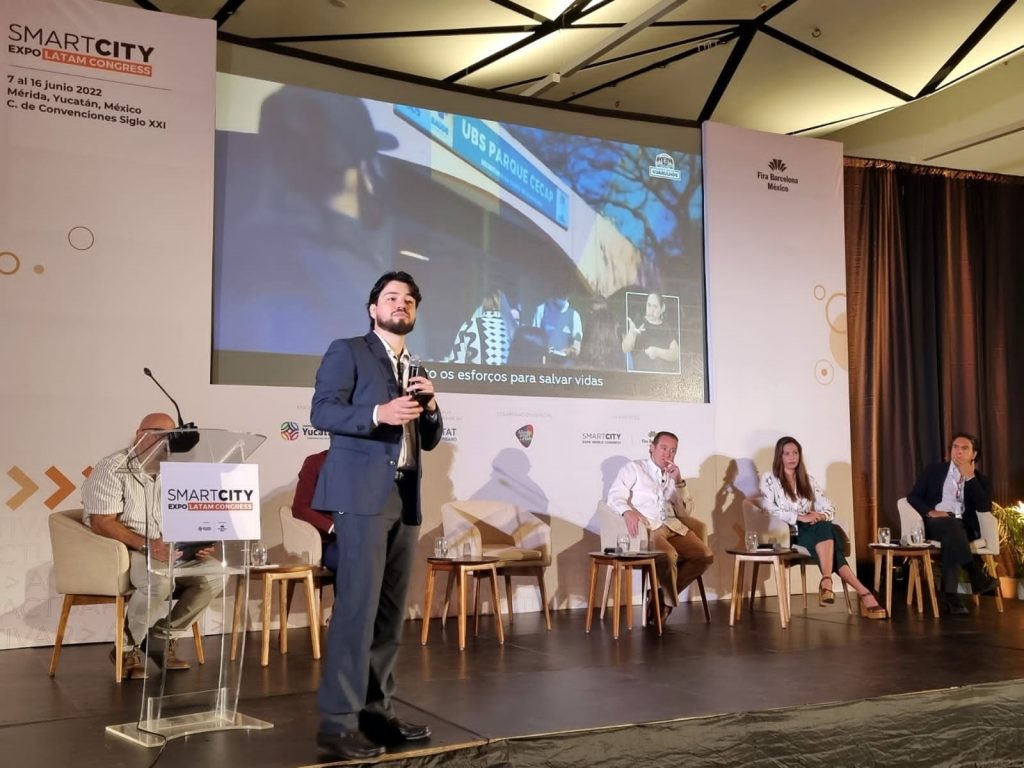 O prefeito de Guarulhos, Guti, apresentou projetos da cidade no enfrentamento à pandemia da covid-19 e abordou o planejamento para a retomada econômica do município nesta quinta-feira (9) no Smart City Expo Latam Congress, em Mérida, no México, como um dos três representantes da Frente Nacional de Prefeitos (FNP) do Brasil. O evento contou a presença de autoridades do país-sede e representantes de outros municípios brasileiros em mesas de debates.