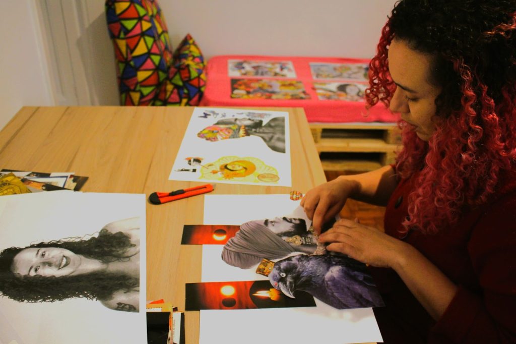 Inspirada pela estética surrealista europeia de artistas como Max Ernest, Salvador Dali e René Magritte, a colagista transporta essas referências para o Brasil com o uso de cores quentes e grandes quantidades de elementos: técnicas bastante latinas, vistas por artistas como a mexicana Fridas Kahlo e o sergipano Arthur Bispo do Rosário. Nessa mistura e mergulhada em seu olhar múltiplo de colagista, educadora e poeta, mostra as infinitas possibilidades de ser e estar.