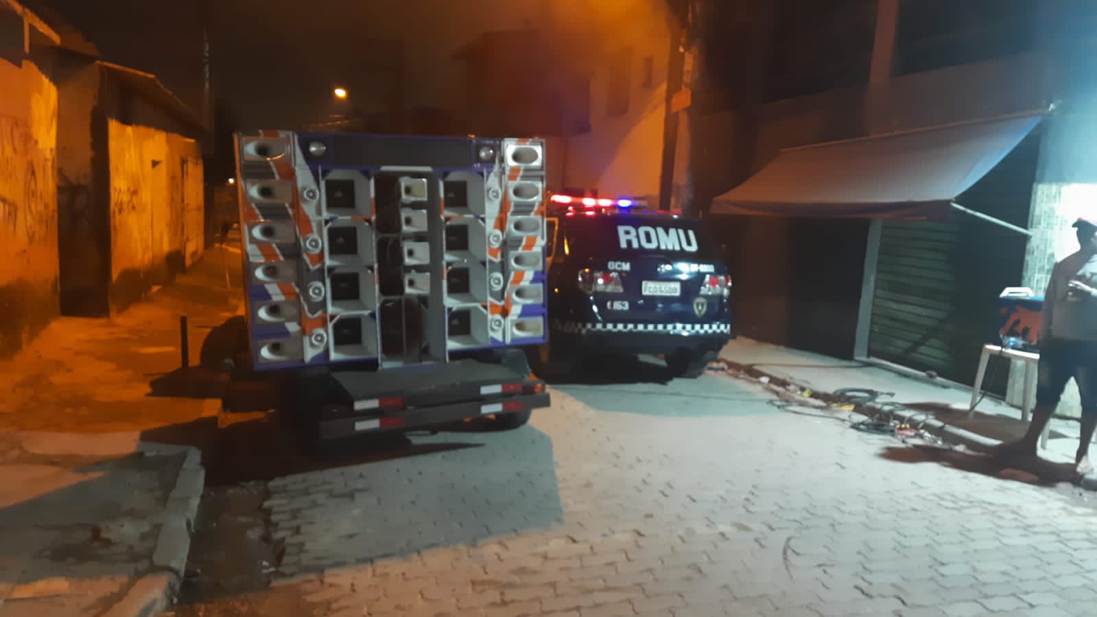 Uma equipe de patrulhamento tático da Guarda Civil Municipal (GCM) de Guarulhos removeu no sábado (25) um veículo com uma pequena carreta de som utilizada para promover um pancadão da rua Louveira, Jardim Marilena. A equipe deparou com aproximadamente 50 pessoas em volta do carro, causando transtornos e obstruindo a via.