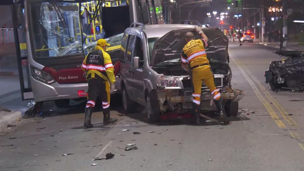 Na gravação, é possível ver um carro preto – aparentemente em alta velocidade – batendo contra um veículo branco que acessava a rua Booker Pittman. Em seguida, ele invade a pista contrária, atingindo um carro prata e uma moto, arremessando o piloto para dentro de um coletivo que estava parado no ponto de ônibus.