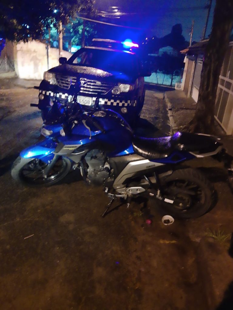 A Guarda Civil Municipal (GCM) recuperou na madrugada desta segunda-feira (8), durante um patrulhamento tático no Picanço, uma motocicleta Yamaha que havia sido roubada em julho na região do Pimentas. Um homem pilotava o veículo quando avistou a viatura e tentou fugir, mas foi interceptado para averiguação.