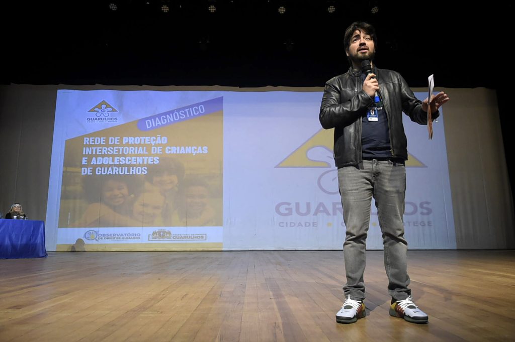 Cerimônia realizada nesta sexta-feira (19) no Teatro Adamastor marcou o lançamento do Diagnóstico Rede de Proteção Intersetorial de Crianças e Adolescentes, elaborado pela Prefeitura de Guarulhos por meio da Comissão Intersetorial para Construção e Monitoramento do Programa de Atendimento de Crianças e Adolescentes Vítimas de Violências e do Observatório de Direitos Humanos, da Secretaria de Direitos Humanos. O prefeito Guti recebeu o documento das mãos da aluna de ginástica artística Amanda Marques, o qual está disponível no link https://bit.ly/DiagnósticoCriançasAdolescentes2022.
