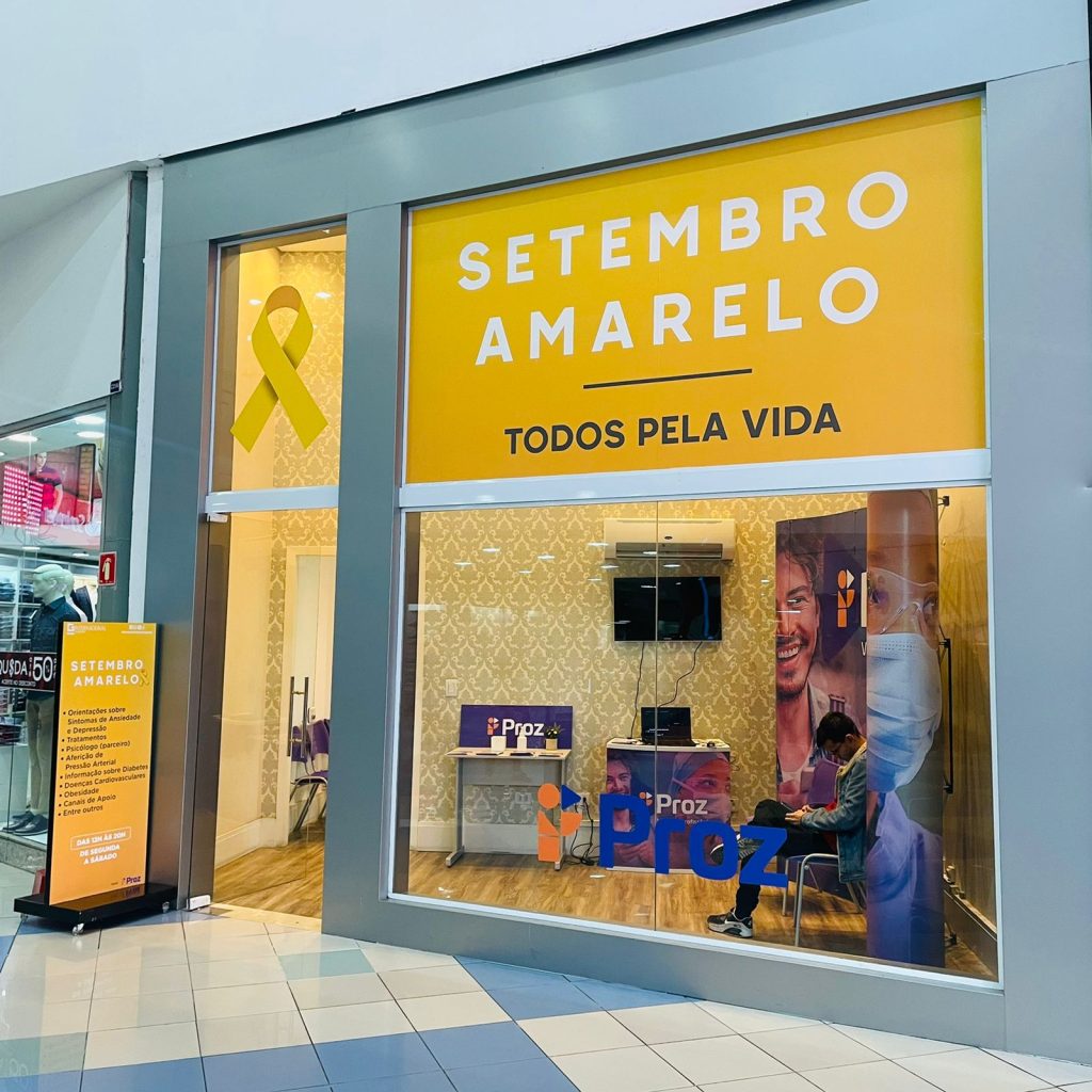 Ao longo de todo o mês, quem visitar o Internacional Shopping, poderá conversar com profissionais da saúde para saber um pouco mais sobre o Setembro Amarelo, que está por trás da campanha que visa promover a conscientização sobre a prevenção ao súicídio. A ação é uma parceria com a Proz, que acontece até dia 30 de setembro, de segunda a sábado, ao lado da Smart Fit.