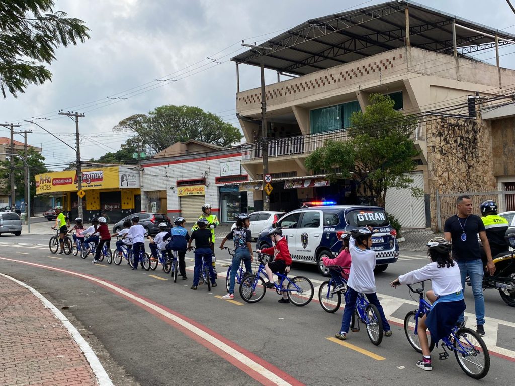 Também como parte da agenda desta quinta-feira da SNT, a praça Nossa Senhora Aparecida, no Jardim Vila Galvão, recebeu a Ação Mobilidade Ativa – Dia sem Meu Carro, com equipe lúdica formada pelos personagens juiz, patinador e ciclista e estudantes da EPG Siqueira Bueno transitando com bicicletas pela ciclofaixa da praça. A atividade foi coordenada por servidores da Escola Pública de Trânsito, da Cidade Mirim Ayrton Senna e da Inspetoria de Patrulhamento de Trânsito da Guarda Civil Municipal (GCM).