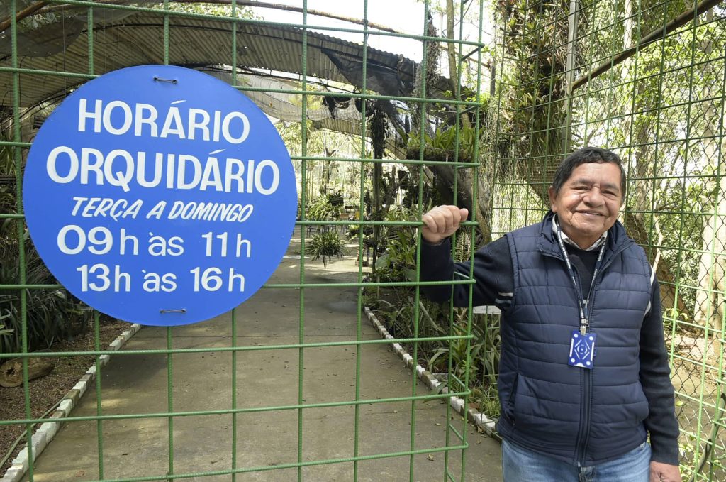 Baiano de Lafaiete Coutinho, Julival entrou em 2000 no Serviço Autônomo de Água e Esgoto (Saae) após passar dois anos desempregado e ser aprovado em concurso público. Com a extinção da autarquia, foi transposto para a Prefeitura e lotado na Secretaria de Meio Ambiente, onde atua como controlador de acesso do Orquidário desde setembro de 2019. “Recepciono as pessoas e é um paraíso trabalhar no meio de flores e plantas. O ar é bom e procuro fazer amigos onde quer que eu esteja”, disse sorridente o servidor que mora em Itaquaquecetuba, é casado, tem quatro filhos e três netos.