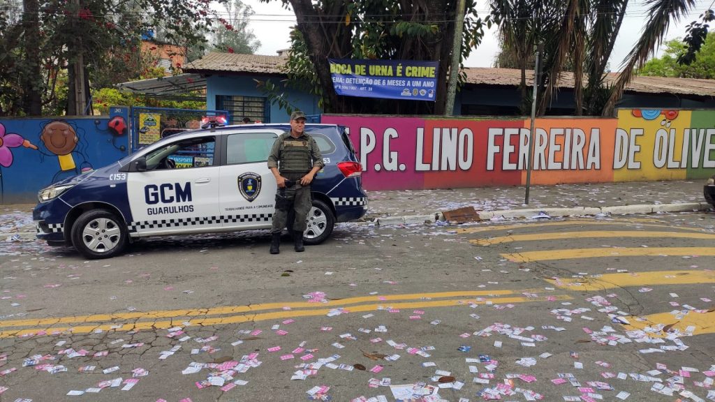 Mais de cem agentes da Guarda Civil Municipal (GCM) de Guarulhos mobilizaram-se em 536 rondas para garantir a segurança do processo eleitoral durante o primeiro turno das eleições deste domingo (2). Houve ainda 51 escoltas de veículos que transportaram os resultados das urnas até os locais de apuração. A fiscalização resultou na detenção de três pessoas flagradas na prática de boca de urna quando jogavam santinhos e panfletos de um candidato no chão de uma via no Jardim Presidente Dutra.
