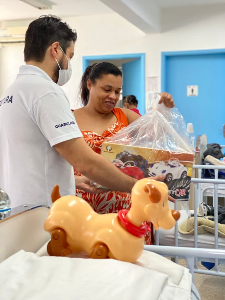 A equipe do Fundo Social de Solidariedade (FSS) de Guarulhos, acompanhada do prefeito Guti, realizou nesta quarta-feira (12) a entrega de 200 brinquedos e kits de higiene aos pacientes internados no Hospital Municipal da Criança e do Adolescente (HMCA). A ação aconteceu em alusão ao Dia das Crianças e buscou levar alegria e mudar a rotina dos pequenos e seus familiares.
