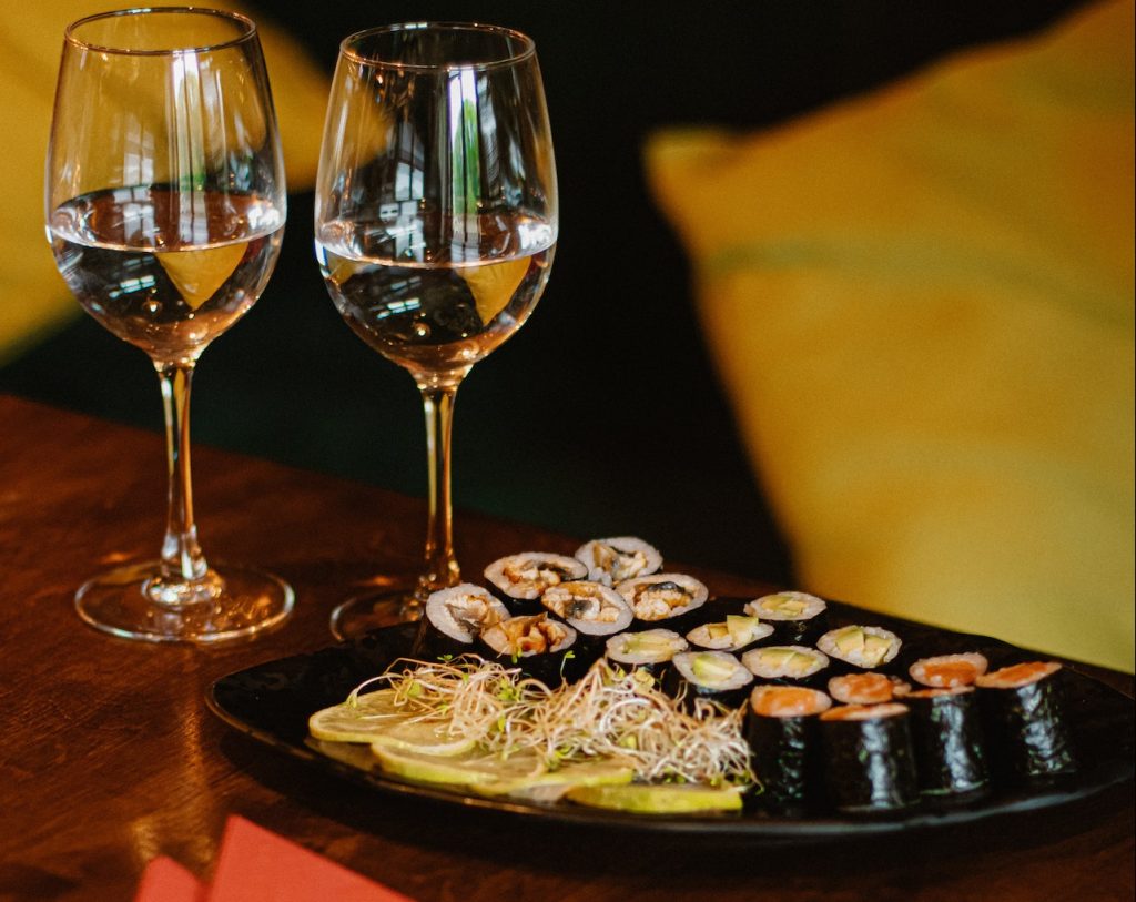 Apesar de constantemente serem associados a pratos pungentes, os vinhos também podem acompanhar barcas de sushi e sashimi.
