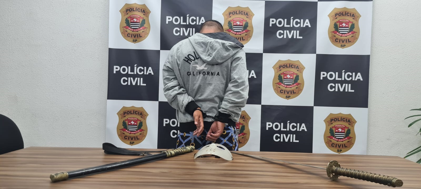 Os policiais da Delegacia especializada em Roubo de Cargas da Cidade de Guarulhos, após intenso trabalho de investigações prenderam um dos líderes da facção criminosa denominada Primeiro Comando da Capital (PCC). Com ele foram apreendidas espada samurai e uma máscara do personagem Jason.