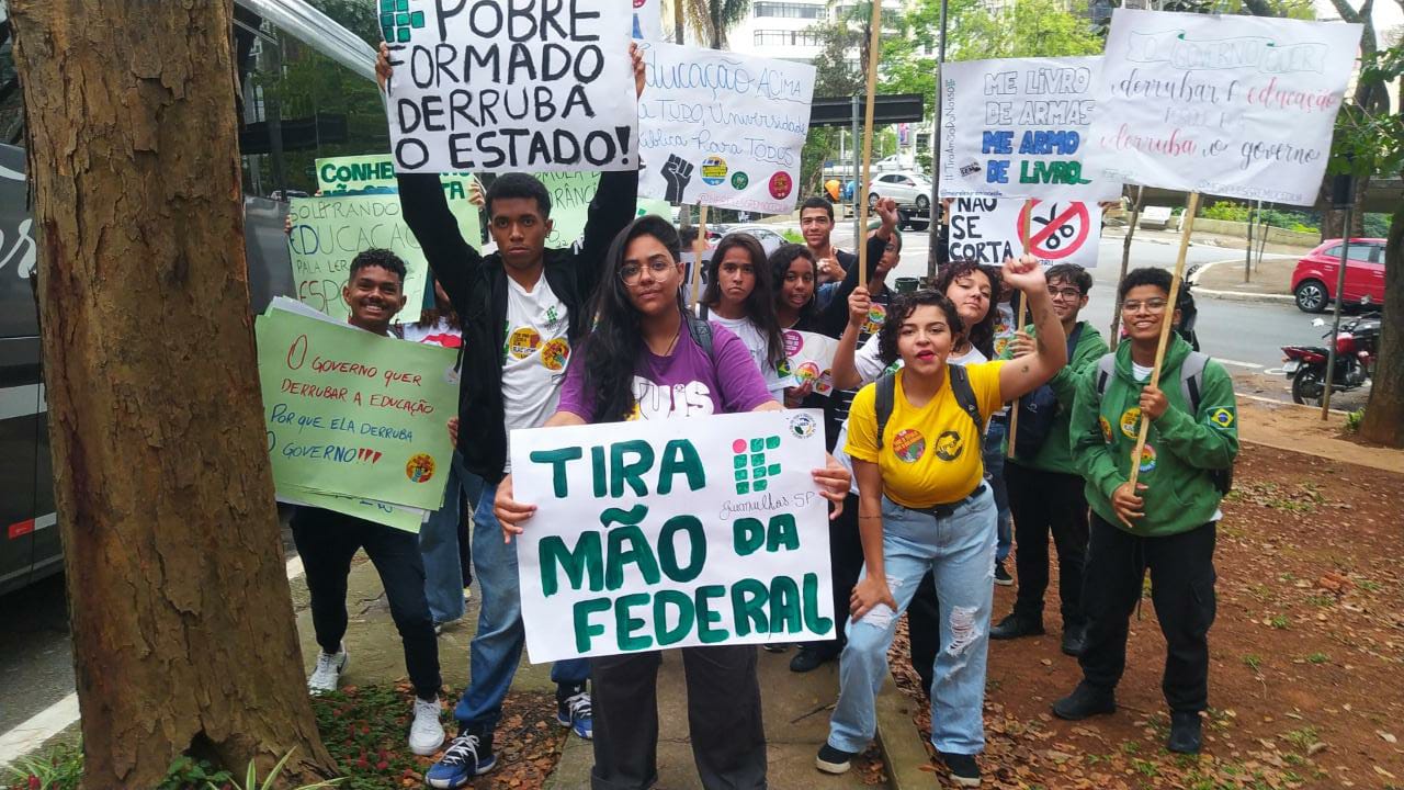 O ato, convocado pela União Brasileira dos Estudantes Secundaristas (Ubes) e União Nacional do Estudante (UNE) acontece em todo o País, nesta terça-feira (18). A mobilização na Avenida Paulista começou por volta das 17h.