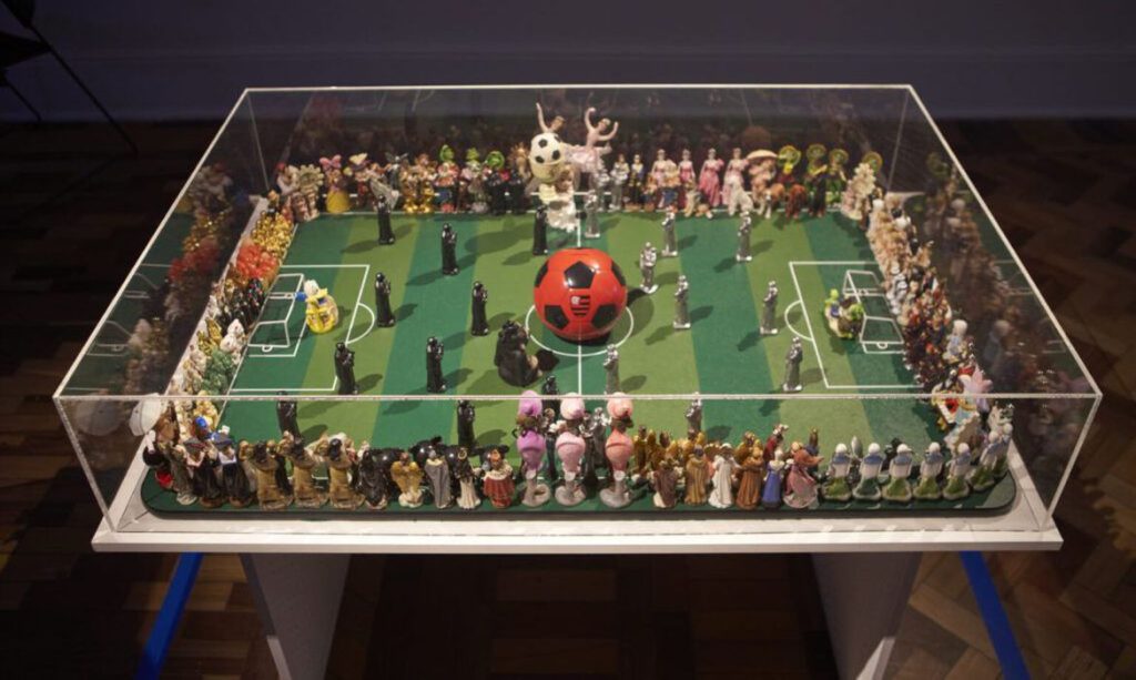 Nos demais andares, especialmente no quarto e terceiro, a mostra é mais conceitual, com apresentação de vídeos, esculturas e fotografias. O quarto andar, por exemplo, é dedicado a uma reflexão sobre o papel das brincadeiras na sociedade e de que forma elas contribuem para a formação das nossas identidades. Aqui se encontra uma réplica da taça Jules Rimet, da Copa do Mundo de 1970, que foi vencida pelo Brasil, e um vídeo com pessoas vestindo a camisa da Seleção Brasileira de Futebol, tendo seus rostos tampados por elas. As obras são de Jaime Lauriano e discutem a utilização do futebol como instrumento de propaganda política durante a ditadura militar brasileira.