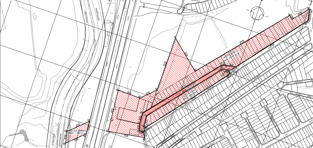 Poço de Ventilação (VSE) São Pedro: Diversos terrenos em linha que inclui residências, um posto de combustível e uma área ao lado do rio Cabuçu, dando acesso a Marginal Tietê à rodovia Fernão Dias.